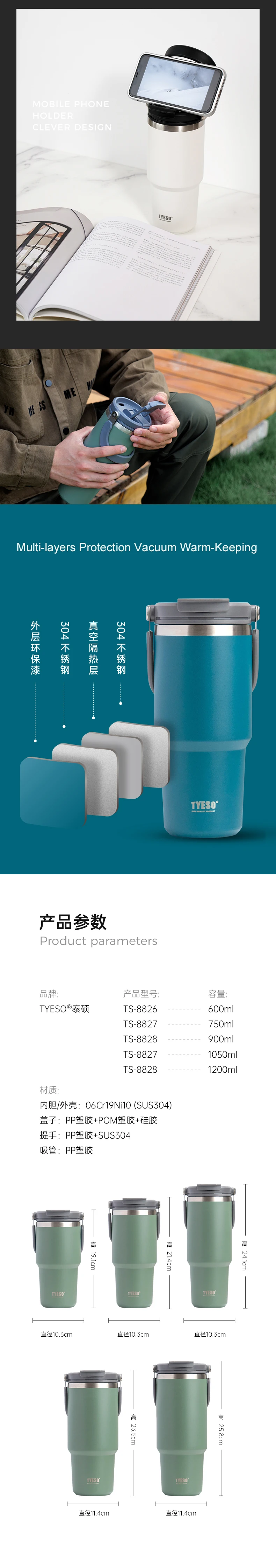 Tyeso copo de café garrafa térmica de aço inoxidável portátil caneca a vácuo garrafa térmica isolada leite chá garrafa de água fria e quente novo