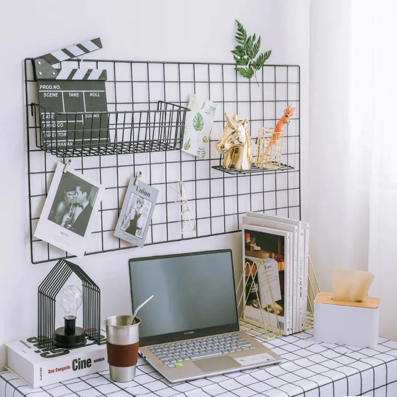 Decoração de parede para casa, arte diy, grade de ferro, decoração, moldura de foto, cartões postais, armazenamento de arte de parede, rack de armazenamento, organizador de prateleira