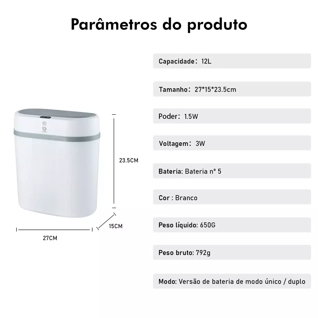 Tecnologia de Sensor Inteligente: Equipada com sensor inteligente, a tampa abre automaticamente ao detectar movimento, proporcionando uma experiência hands-free e higiênica.